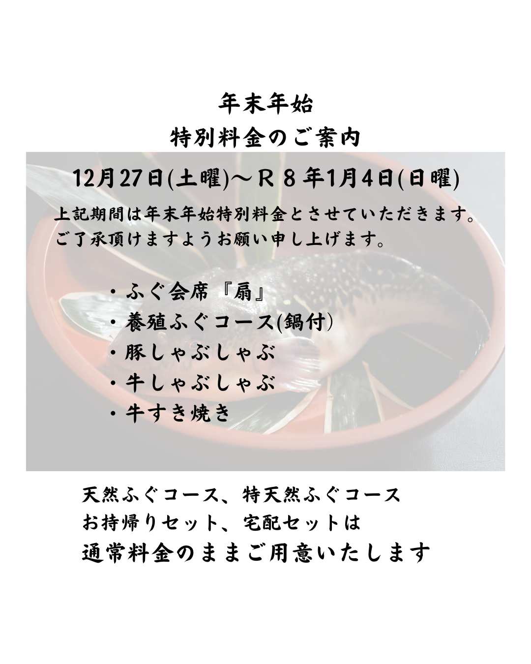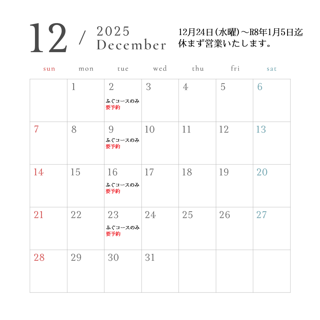 12月24日~令和8年1月5日(月)迄休まず営業いたします。